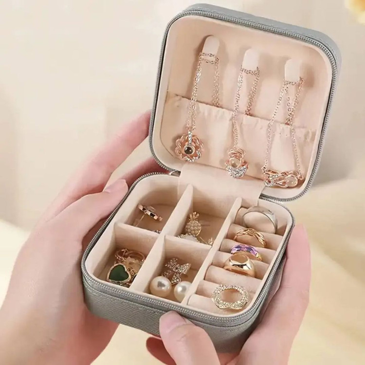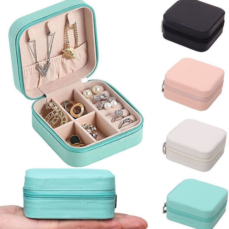 جعبه جواهرات دخترانه شیک از چرم مصنوعی با فضای داخلی پارتیشن بندی شده مناسب انگشتر، دستبند، گردنبند و سایر جواهرات. این مدل کیف جواهرات مسافرتی ابعاد مناسبی داشته و وزن آن حدود 100 گرم است که حمل راحتی داشته و می توان داخل کیف دستی و چمدان جای داد.